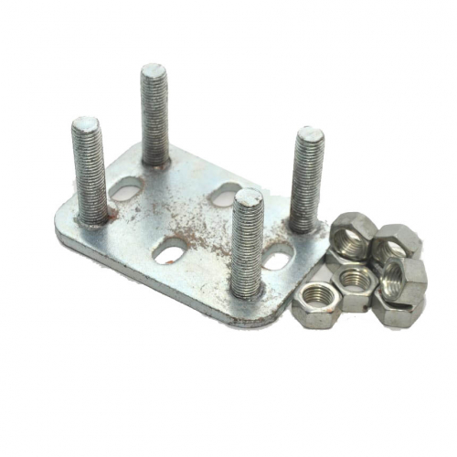 Готовые площадки со шпильками под роликовые опоры для откатных ворот. Площадки привариваются к фундаменту для откатных ворот, а сами ролики для откатных ворот крепятся к площадке при помощи шпилек и гаек. Это немного дороже, чем приварить опоры непосредственно к швеллеру, но избавляет Вас от ненужной возни и затрат времени, т.к. добиться точного выставления по одной прямой роликовых опор (если ролики будут стоять не по прямой, то будут сильно изнашиваться) без регулировочных подставок очень сложно.